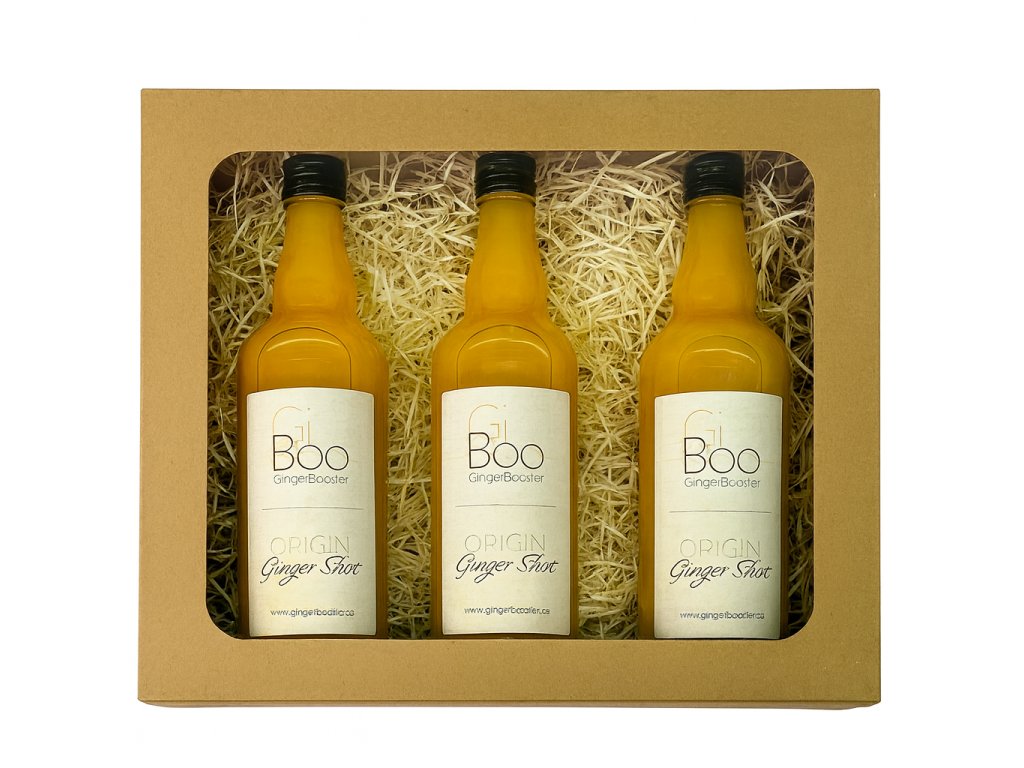 Darujte svým blízkým vitamínovou dárkovou tašku s našimi Ginger Shoty. Balení je zabaleno v kartonové krabici s průhledným víkem a s dřevitou vlnou jako výplní.